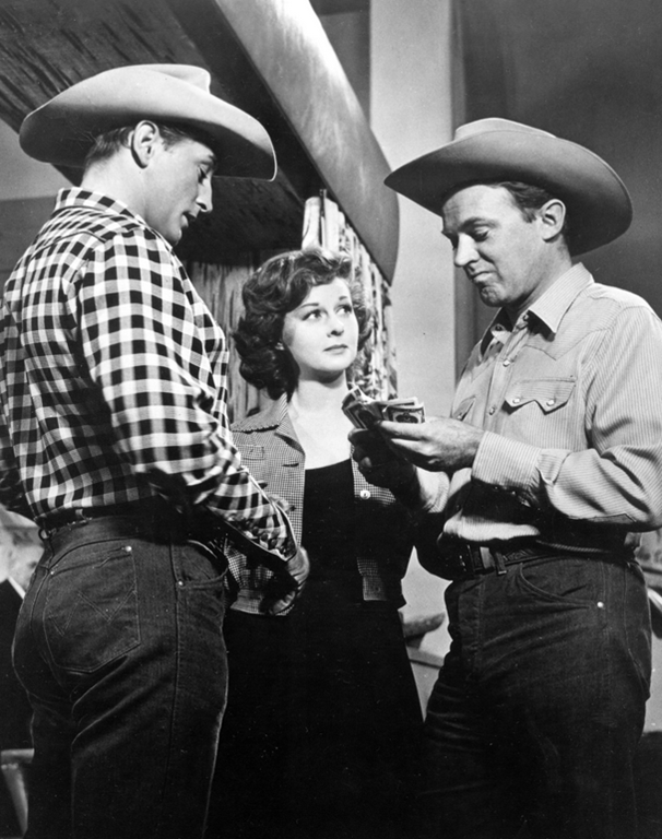 Mejor es considerar como cima de esos años RKO la magnífica Hombres errantes (1952), uno de esos títulos que justifican por qué Nicholas Ray siempre ha sido uno de los directores, si no más grandes, sí más amados por los cinéfilos (sería el quinto grande del romanticismo en el cine, formando así un genial repóker con los ya señalados). Ray aprovecha el aire cansado de Mitchum para plasmar el que fue uno de los temas centrales de su obra, el desarraigo, dándole el papel de una antigua estrella del rodeo que ha tenido que retirarse por mera decadencia física y que, cual polilla a una luz, se pega a un joven matrimonio conMitchum, Susan Hayward y Arthur Kennedy en Hombres errantes el que se cruza en el camino. Los encuentra, significativamente, cuando regresa a la modesta casa en que nació, en la que todavía se esconden unos pocos recuerdos de su infancia —un revólver desvencijado, una cajita con un par de centavos y un manoseado programa de rodeo (el momento en que los recupera supone una de las imágenes más bellas de la filmografía de Ray)—, un programa de vida infantil que convirtió en existencia adulta con el resultado de no conservar nada más que, en sus propias palabras, unas espaldas anchas y una cabeza hueca. Volviendo a la pareja, en él (el siempre turbulento Arthur Kennedy) ve un reflejo de sí mismo, porque posee extraordinarias dotes para convertirse en un gran rodeo man; en ella (la maravillosa Susan Hayward, con su seductora combinación de carácter y feminidad) ve la promesa de lo que nunca ha tenido: un hogar estable con una mujer que es garantía de felicidad. Ese hombre marcado por una estrella errante no podrá encontrar en ellos más que un efímero espejismo, pero la relación entre los tres da para que Nicholas Ray depare algunos de los momentos más intensos de su filmografía, amén de darle a la actriz el tal vez mejor papel de su carrera: el primer plano que la despide de la historia siempre me ha emocionado inconteniblemente.