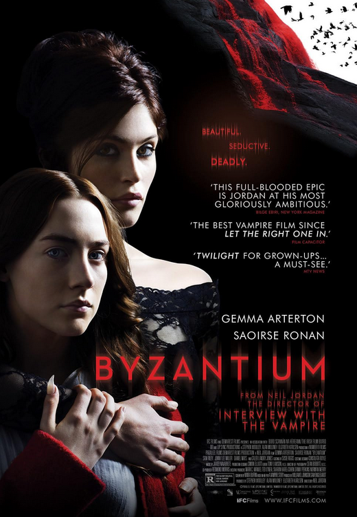 Casi veinte años después de Entrevista con el vampiro, cuando Neil Jordan se encontraba al borde de verse convertido peligrosamente en un director amortizado para el cine, inesperadamente filmó otro acercamiento a los no muertos, que por desgracia no tuvo mucha repercusión y que, sin embargo, mejora muchísimo su primer intento, Byzantium (2012). Una vez más, Jordan no firma el guion, acreditado a Moira Buffini, escritora que adaptaba una obra teatral suya titulada A Vampire Story. La mirada que Buffini aporta al vampirismo es notablemente original. En primer lugar, sus criaturas no muerden a sus víctimas: no les crecen los colmillos, sino que la uña del dedo pulgar se les afila extraordinariamente para desgarrar sus gargantas y así beber su sangre. Tampoco son seres de la noche (en The Addiction, eso sí, mal que bien Kathy soportaba el día: idea tampoco original, pues procede del mismo Stoker, algo que el cine descartó desde el Nosferatu de Murnau). Y la conversión en vampiro requiere de un rito de paso solo reservado a unos iniciados, pues se produce en una casi inaccesible isla rocosa en cuyos riscos hay una cabaña de piedra donde mora un ser (al que se denomina soucriant, nombre que se corresponde con una figura del folklore caribeño) que adopta la figura exacta de quien llega a su vera: justo entonces las cascadas que rodean el lugar tornan sus aguas al color escarlata.