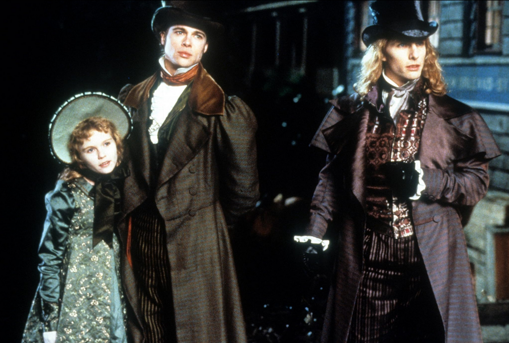 Hoy como ayer, considero que no consigue superar el terrible lastre de su inadecuado reparto masculino. En el papel del amoral e irresistible Lestat, Tom Cruise (como denunció la escritora, que intentó que se le descartara) carece del carisma malsano necesario, intentando compensarlo con una mayúscula sobreactuación y unos ricitos rubios que son de ver para creer. Brad Pitt, aun más soportable (yo al menos llevo mejor la inexpresividad que el histrionismo desaforado), es incapaz de transmitir la tortura interior de su personaje. Los dos son superados netamente por la niña Kirsten Dunst, que además tiene a su cargo el papel más interesante de la función. Tampoco me han convencido nunca ni la excusa argumental (¡el vampiro, criatura anónima por excelencia, como defienden tantas veces, dejándose entrevistar!) ni el empalago que desprende la escenografía de Dante Ferretti, un hombre temible cuando su arte no se pone al servicio de la atmósfera sino al revés (ahí está la sobrevalorada La edad de la inocencia, de Scorsese, para demostrarlo) ni la descompensación de interés entre los varios segmentos que componen la historia aunque mejora mucho después de la aburridísima parte inicial en Nueva Orleáns, justo cuando aparece la niña vampira.