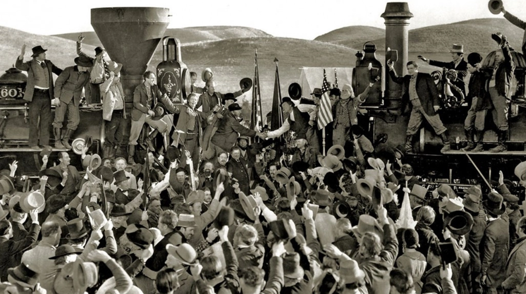 Acto seguido, Charlier emprende un segundo round sobre las guerras indias pero para ello utiliza un motor argumental que está extraído de un clásico olvidado, Unión Pacífico (1939), fabuloso western que supone la obra maestra del todavía hoy injustamente despreciado Cecil B. DeMille. El punto de partida es el mismo: Joel McCrea en la pantalla, Blueberry en el tebeo, son reclamados por la compañía Union Pacific (que está entablando con una empresa rival una carrera contra el reloj para tender el ferrocarril que atraviesa la inmensidad del país) para frenar las malas artes con que sus competidores están intentando retrasarlos. En la película, Charlier y Giraud encontraron un catálogo exhaustivo de temas e iconos del género, comenzando precisamente por el del «caballo de hierro», y se comprende que se sintieran fascinados por ese sentido del primitivismo que transpira todo el cine de DeMille. Ahora bien, si DeMille glosa exultante la construcción de su país mediante una sencilla historia de buenos y malos (sus virtudes, repito, se encuentran en su prodigioso sentido narrativo), los dos artistas europeos, mucho más críticos, aprovechan para entablar su segundo lamento por el mal trato dado a los indios (en el film, la aparición de estos, durante el clásico asalto a un tren, está narrada mediante las convenciones habituales en los primeros tiempos del género).