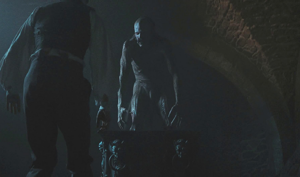 Todo viene a que, igual equivocado, hay algo que me chirría en la narrativa de Eggers, que es que Orlok me parece un tipo monstruoso más que trágico (además de ser víctima, repito, a mi parecer, de un ritmo monótono y literariamente desacertado). Y para mí, esta distinción entre lo monstruoso y el héroe caído es obligatoria si queremos hablar de Drácula/Nosferatu.