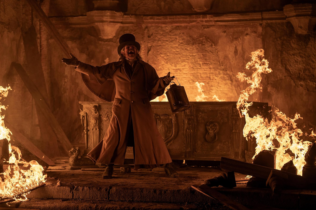 Hay un elemento más mediante el cual Eggers corrige a Coppola, amén de utilizarlo para vincularse directamente con la novela de Stoker: el personaje del profesor Von Franz, el experto en ocultismo que ilumina a los personajes acerca del peligro que los acecha. Es decir, el equivalente a Van Helsing, personaje que en los dos Nosferatu previos apenas recibía ninguna importancia, y que aquí la recupera del todo. Como es natural, será él quien descubra la forma de acabar con el vampiro (en este caso, el grimorio donde lo lee —que en aquellos encontraba Hutter en una posada en el camino— es propiedad de Knock, otro personaje que por cierto también recibe un tratamiento más amplio y coherente), y quien se lo comunique a Ellen, dándole así la posibilidad de que esta redima su pecado original y sacrifique su vida. Willem Dafoe, ya presente en otros títulos del director, borda el personaje, dándole el punto de extravagante singularidad que requiere su condición pero sin encaminarlo al tratamiento grotesco e insoportable que le diera Anthony Hopkins en el film de Coppola. Dafoe consigue así que su Van Helsing se una de modo admirable a la galería de los mejores encarnadores del personaje en el cine, de Peter Cushing a Laurence Olivier (este último en el Drácula de 1979).