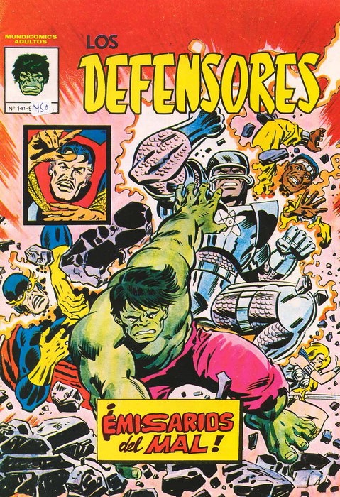 Lo más significativo de la serie se encuentra en sus primeros cincuenta números (la conclusión de la saga de Escorpio coincide con este número redondo). En ellos se creó la situación base de la misma. Pese a las proclamas de tratarse de un grupo sin vínculos grupales, contaron con un líder nato, el Doctor Extraño, cuya casa-santuario situada en el corazón del entonces bohemio barrio de Greenwich Village serviría de cuartel general a Los Defensores. Aunque los personajes invitados entraban y salían, tres héroes se mantuvieron durante mucho tiempo en la alineación principal al lado del Señor de las Artes Ocultas. El primero fue Hulk (para los más viejos lectores de Vértice, La Masa), elección que para mí siempre fue un error porque la naturaleza inestable del coloso esmeralda —por entonces era un bruto de inteligencia primordial que emergía del interior del doctor Bruce Banner en momentos de conmoción para este y se dedicaba a poca cosa más que a combatir y combatir— no encajaba bien en una colección grupal, que implica tiempos muertos en los que un ser como él solo podría provocar momentos embarazosos. Por su naturaleza, Hulk era aún más solitario que Extraño y que Namor (que rara vez volvió a aparecer por Los Defensores, por cierto), más incapaz de actuar en equipo.