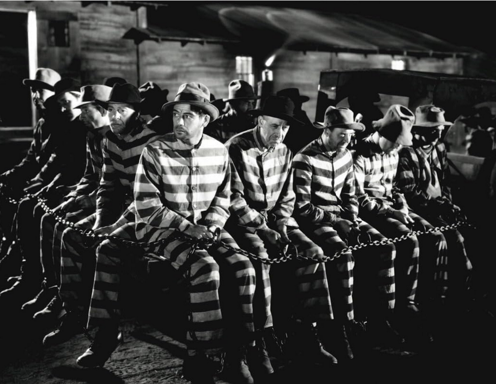Los tres actores iniciaron enseguida una carrera rutilante. De ellos, como he dicho, quien se desvinculó más pronto de su origen fue Paul Muni, aunque todavía tuvo tiempo para rodar otro clásico del género, Soy un fugitivo (Mervyn LeRoy, 1932). Su personaje es uno de esos tipos para los que los años veinte no son nada felices y que acaba siendo injustamente condenado a uno de esos penales cuyos reclusos realizaban trabajos forzados consistentes sobre todo en picar piedra, embutidos en uniformes de rayas que parecen siniestros pijamas y con los pies unidos por una cadena. El film efectúa una denuncia del cruel sistema penal americano que se daba sobre todo en el Sur, compaginando esta dimensión con la pura narración (estamos ante un film de evasiones: dos veces nada menos se escapa el protagonista del chain gang donde consumía su vida), y esa mirada carece de la blandura que no tardaría en «domesticar» el género. Redimido tras su primera fuga porque aún cree el sistema y convertido en un pilar de su ciudad (bajo identidad falsa), de nada le sirve esto tras ser descubierto: bien al contrario, el sistema se ceba con él por aprovechar el eco de su situación para denunciar los abusos de los carceleros. Por eso, su segunda fuga carece de la esperanza de la primera. Como manifiesta su famoso final, en que acude entre las sombras de la noche a ver por última vez a su amada, ha desistido de ser otra cosa que un fugitivo que se niega a esperar nada bueno de la sociedad. Y cuando ella le pregunta cómo va a sobrevivir, él da una respuesta que se ha hecho legendaria: «Yo robo».