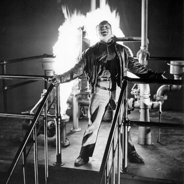 Mamá, mira, estoy en la cima del mundo!Ahora bien, todavía le quedaba un último papel inmortal dentro del género. Fue a las órdenes del mismo director Walsh en una película, Al rojo vivo (1949), que funde sugestivamente las cualidades del nuevo cine negro en que se inscribe con las características de la vieja crook story, pues no en vano Cagney da cima a ese rol de gangster no ya brutal, que también, sino irredimiblemente psicopático. Nada en este personaje de otra época concita a la fascinación que, aun de modo turbio, desprendían los Camonte y Pequeño César, y es de admirar que a ello contribuye sobremanera la interpretación de un Cagney dispuesto a que eso no suceda de ningún modo. Por otra parte, este boss concita tanto terror (porque su insania lo convierte en un sujeto del todo impredecible) como patetismo. En primer lugar, por lo vulnerable que lo vuelven sus ataques de epilepsia. Pero también por su dependencia de mamá y por lo fácil, en el fondo, que resulta engañarle, aun cuando sea porque, terriblemente solo como sabe que está, se agarra a cualquier sujeto que parezca brindarle su amistad, como el policía encubierto al que da vida Edmond O’Brien que consigue llegar hasta él en la cárcel donde espera pacientemente a ser rescatado. El nombre de Cody Jarrett lleva a cualquier cinéfilo a una serie de imágenes emblemáticas, pero especialmente la que cierra la historia. Es decir, el gangster que se creyó invulnerable, rodeado por las fuerzas del orden y atrapado en la torre de una refinería de petróleo, perdida definitivamente una cordura que nunca fue muy sólida, decide irse a lo grande de la vida, haciendo estallar un infierno de fuego a su alrededor mientras grita su mítica despedida: «¡Lo conseguí, mamá! ¡Estoy en la cima del mundo!». No encuentro mejor epitafio, en su conjunción de fascinante insania y violenta megalomanía, para el cine de gangsters brutales.
