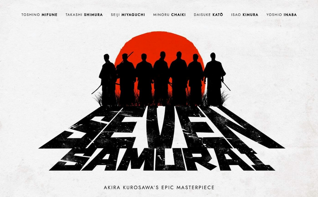 Director: Akira Kurosawa. Guión: Akira Kurosawa, Shinobu Hashimotu y Hideo Oguni. Fotografía: Asaichi Nakai. Música: Fumio Hayasaka. Reparto: Toshiro Mifune (Kikuchiyo), Takashi Shimura (Kambei), Daisuke Katô (Sichiroji), Isao Kimura (Katsushiro), Minoru Chiaki (Heihachi), Seigi Miyaguchi (Kyuzo). Dur.: 207 min.