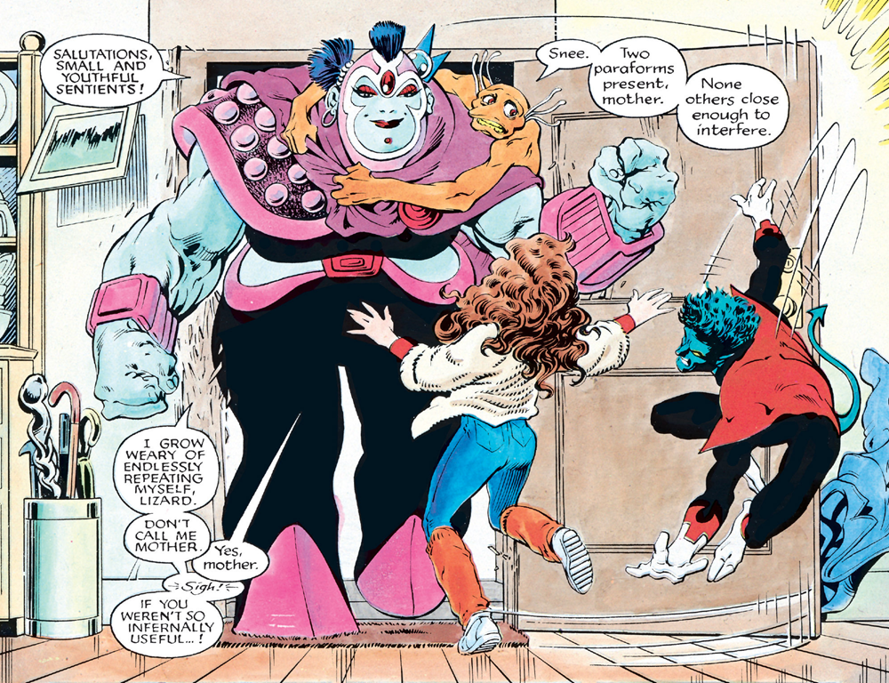 En el fondo, mi lamento es absurdo. Por un lado, lo que haría Claremont con los personajes desarrollados por Dave Thorpe, Alan Moore, Jamie Delano y, sobre todo, Alan Davis, sería trivializarlos al dotarlos del gimoteante dramatismo propio de sus mutantes, siempre lamentándose de todo lo habido y por haber, algo que difícilmente encajaba con el hombre al que quería convencer para que le ayudara a hacerse cargo de todo. Pero si Claremont no se hubiera «apoderado» de ellos, para bien y para mal, habrían quedado en el limbo de las creaciones secundarias marvelitas y quién sabe en qué peores manos habrían caído. Por tanto, hago constar mi reflexión y sigo adelante.