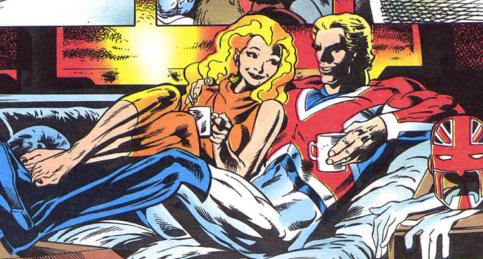 Claremont también da paso al inspector jefe Dai Thomas, secundario consolidado del entorno de Brian, y recuerda a otro que él mismo había creado (y nadie más utilizado) en los primeros números de su Captain Britania, la chica con la que planteaba (al estilo de Peter Parker y sus cuitas sentimentales) la posibilidad de un romance para el joven Brian. Courtney Ross ahora es una importante banquera y se ha teñido el pelo de rubio, lo que la convierte (sin que esto se explique, faltaría más) en una sosias de Saturnina y también de un personaje procedente de la etapa de Jamie Delano, Opal Lun Sat-yr9, la Amatrix, otra versión paralela de la Majestrix a la que Britania conoce en un mundo totalitario. Prisionera desde su derrota, otra trastada imprevisible de Cacharro hace que pueda escapar a la Tierra y que allí suplante a Courtney Ross, a la que desintegra. En este caso sí me parece una buena idea de Claremont y no una mera desmesura: deja un saludable escalofrío como colofón a un episodio en el que Courtney se había ganado el respeto de todos al ser atrapada en el Mundo Asesino de Arcade e introduce unas expectativas que parecen prometedoras.