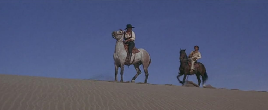 En cuanto a Cuchillo, su introducción es genial: inicialmente una sombra a la que no le vemos ni el rostro (cubierto por la espuma de afeitar: ha sido sorprendido afeitándose) y que huye como un espectro (más adelante le dirá con amargura a Corbett que es alguien acostumbrado a huir, del mismo modo que el otro es un perseguidor nato, afirmación que equivale a la marxista de opresores y oprimidos). Es más, si inicialmente supone una figura ambigua, a quien el espectador no sabe cómo definir, poco a poco nos resulta inevitable sentir cierta simpatía con él, aun cuando sea por su pertinacia para salir con bien del mayor apuro. Es más, llega un momento en que Corbett advierte, con exasperación, que mientras que el noble justiciero que se supone que es él solo es recibido con rechazo por aquellos que cree que debieran ayudarle —no comprende que, en el México cuya frontera ha traspasado en su persecución, la figura del gringo avasallador no resulta precisamente bienvenida—, Cuchillo solo recibe comprensión. Es un hallazgo que esto suponga un eco del planteamiento de un western espléndido, este sí clásico de Hollywood sin discusión Del infierno a Texas (1958), de Henry Hathaway, en que el ranchero temeroso de Dios que persigue al hombre que ha matado a su hijo descubre que a este todos lo ayudan con gusto mientras que él solo encuentra obstáculos.